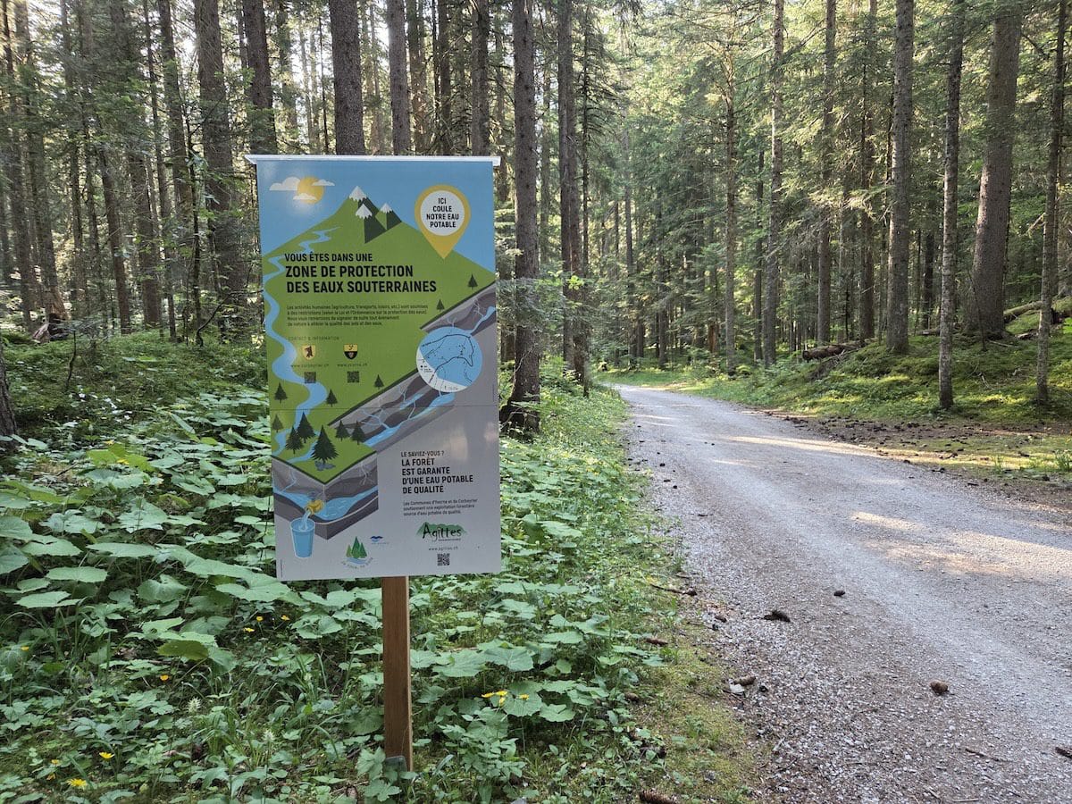 Panneaux de sensibilisation forestière : une approche complémentaire met en avant le rôle des forêts dans la préservation de la qualité de l'eau potable. Ces panneaux éducatifs valorisent l'exploitation forestière durable comme garante d'une eau de qualité, créant un lien direct entre gestion environnementale et ressource hydrique.
